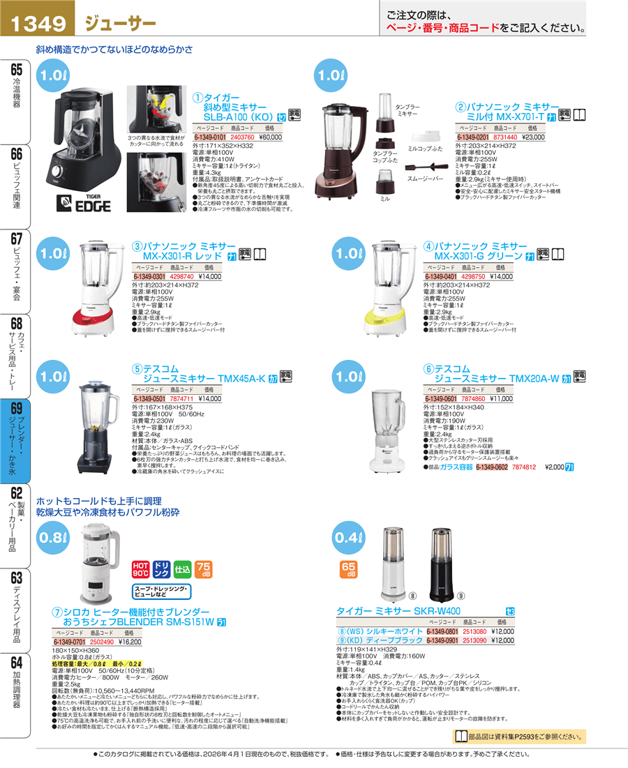 | e26-7874711 | テスコム ジュースミキサー TMX45A-H | 上代 14,000円(税抜) 見積 | ||