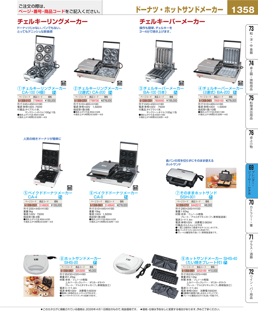 | e26-3253100 | ホットサンドメーカー SHS-40 | 上代 10,000円(税抜) 見積 | ||