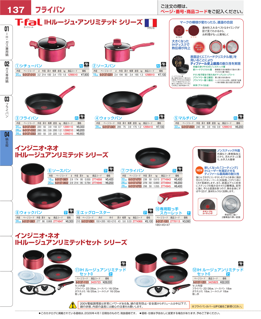 | e26-1299510-137 | ティファール IHルージュ・アンリミテッド マルチパン 22㎝ 05033887 | 上代 6,200円(税抜) 見積