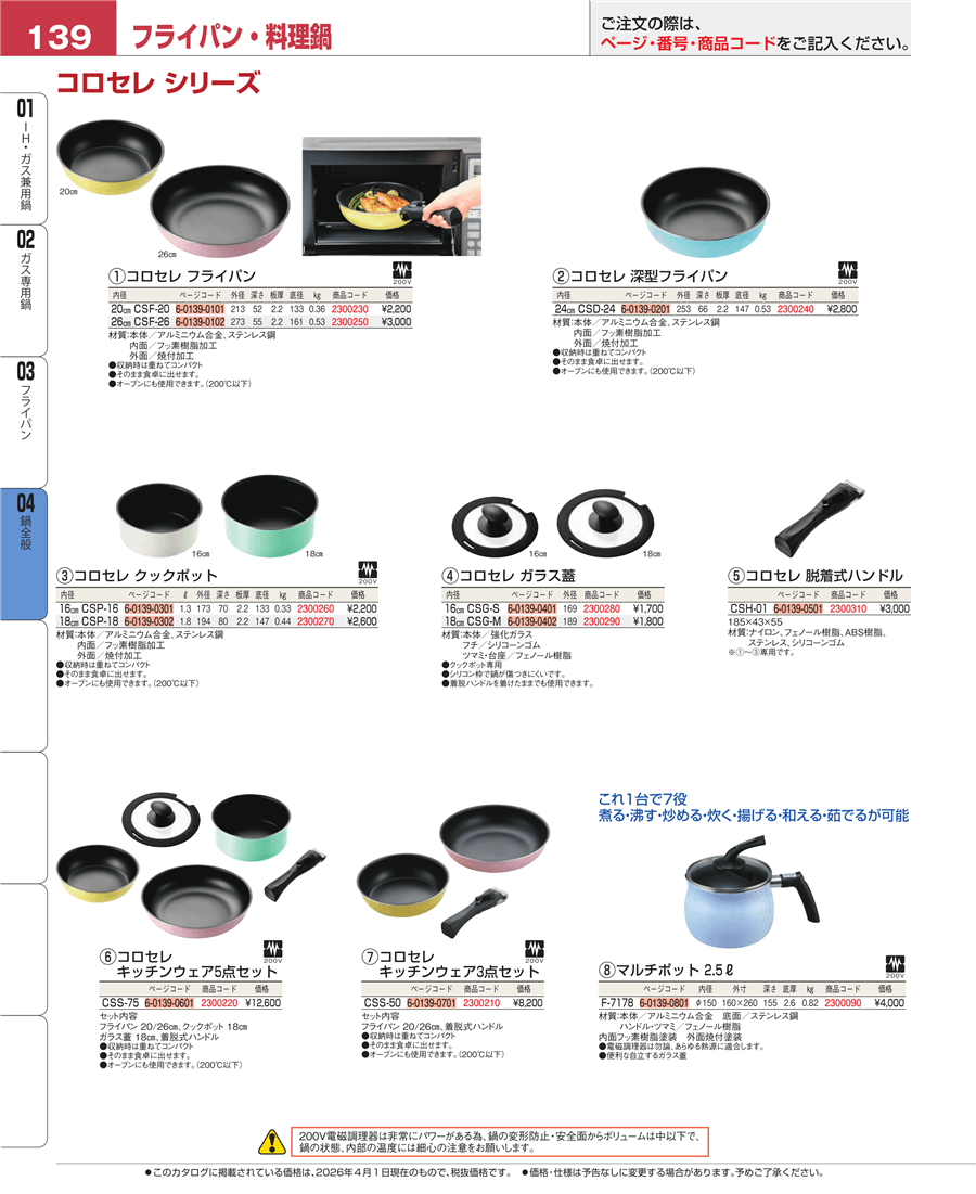 | e26-2300220 | コロセレ キッチンウェア5点セット CSS-75 | 上代 12,600円(税抜) 見積 | ||
