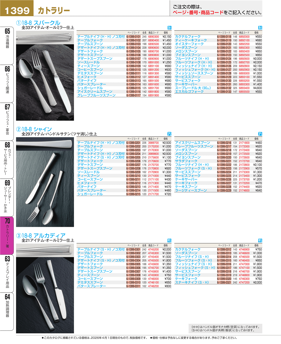 | e26-4745300 | 18-8 アルカディア テーブルフォーク | 上代 1,500円(税抜) 見積 | ||
