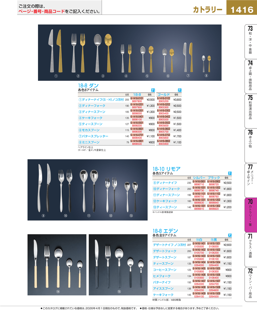| e26-0106200 | 18-8 エデン デザートフォーク 黒 | 上代 1,600円(税抜) 見積 | ||