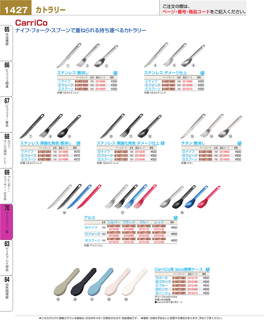 | e26-2214910 | CarriCo チタン フォーク 艶消し | 上代 900円(税抜) 見積 | ||