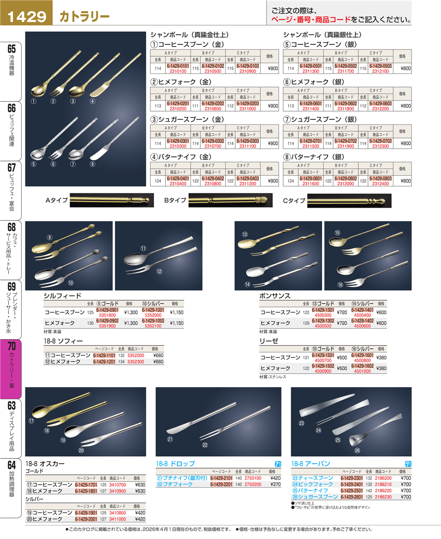 | e26-5351900 | シルフィード ヒメフォーク ゴールド | 上代 1,300円(税抜) 見積 | ||