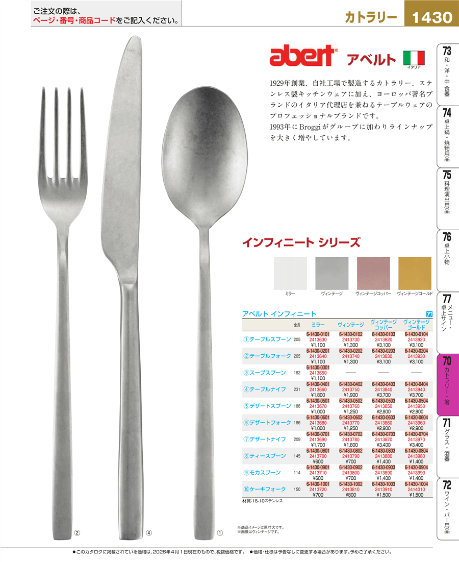 | e26-2413760 | アベルト インフィニート ヴィンテージ デザートスプーン CV75111 | 上代 1,250円(税抜) 見積
