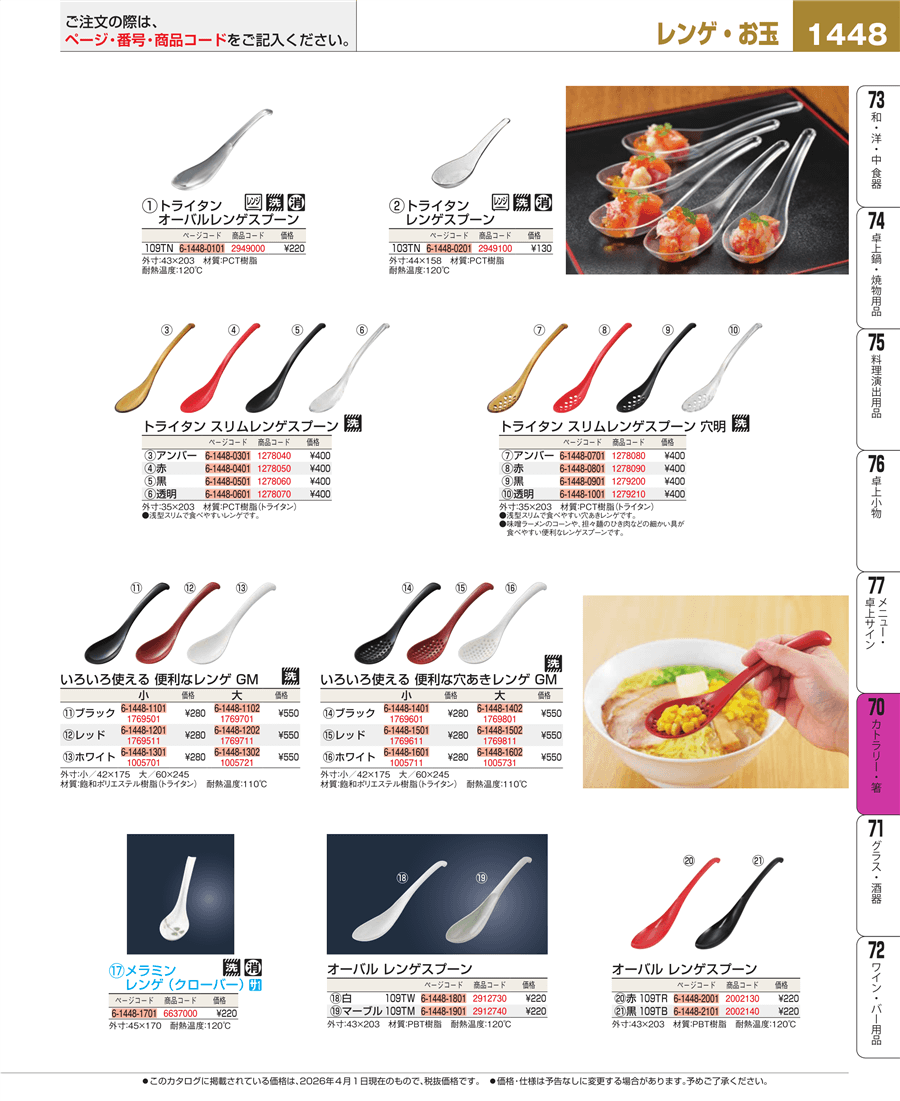 | e26-1278050 | トライタン スリムレンゲスプーン 赤 107TR | 上代 400円(税抜) 見積 | ||