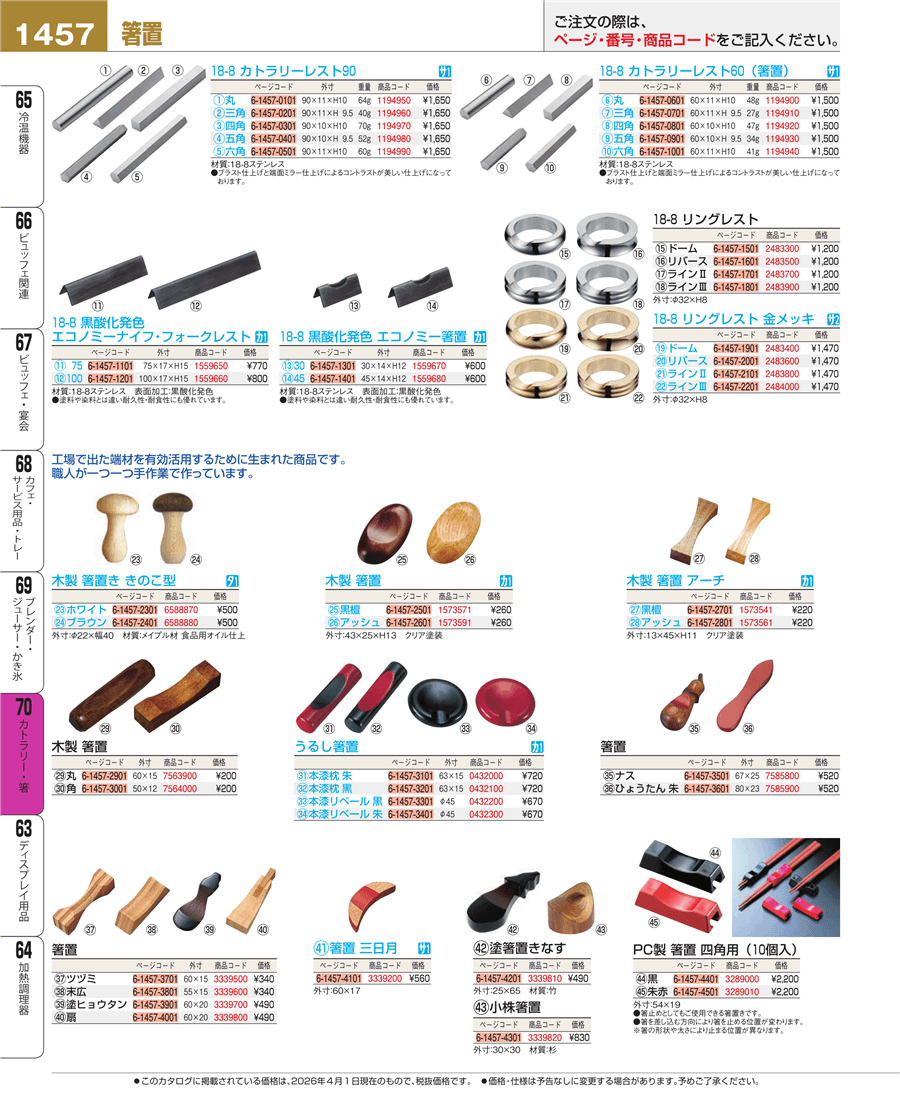 | e26-1194990 | 18-8 カトラリーレスト90 六角 | 上代 1,650円(税抜) 見積 | ||