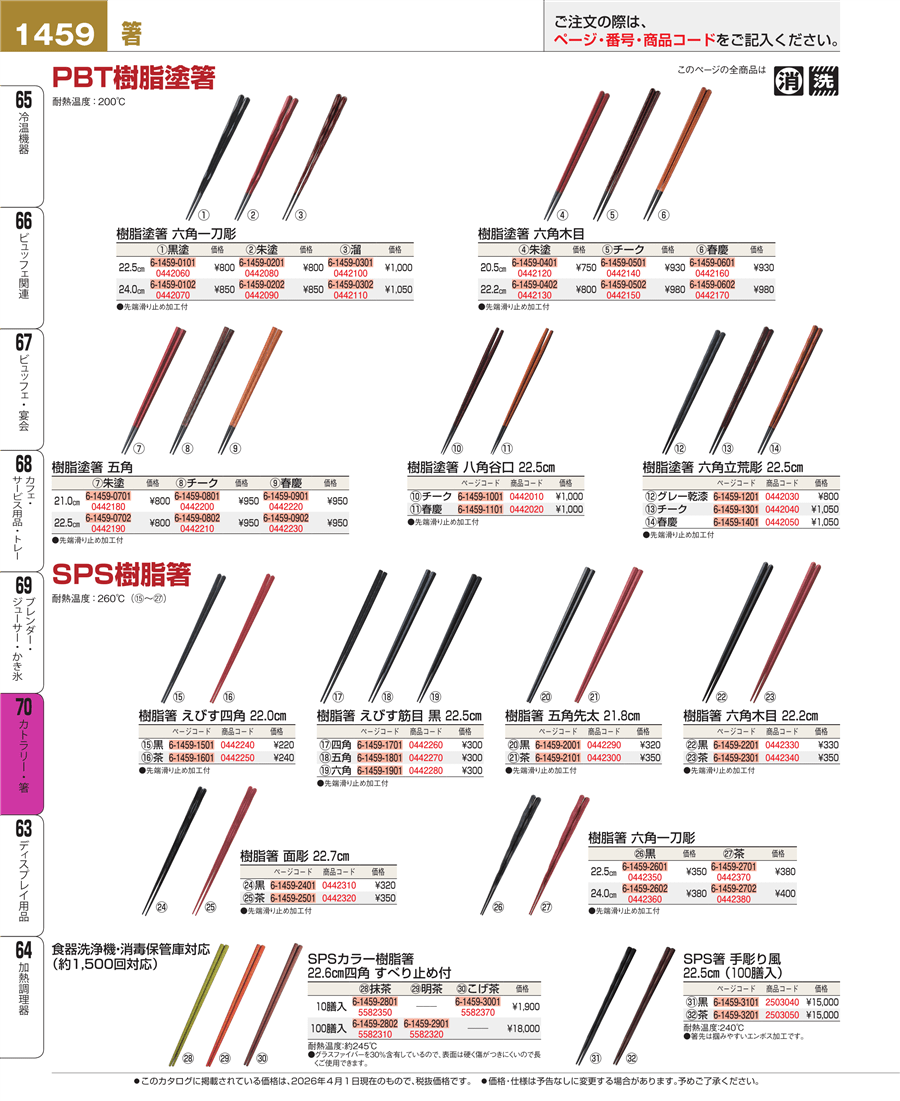 | e26-0442170 | PBT樹脂塗箸 六角木目 22.2㎝ 春慶 90030712 | 上代 980円(税抜) 見積