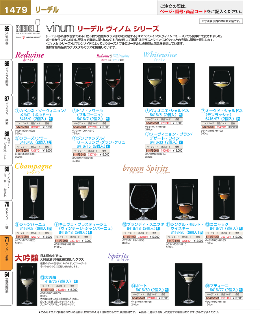 | e26-7207701 | リーデル ヴィノム シャンパーニュ・フルート 6416/08(2個入) | 上代 12,000円(税抜) 見積