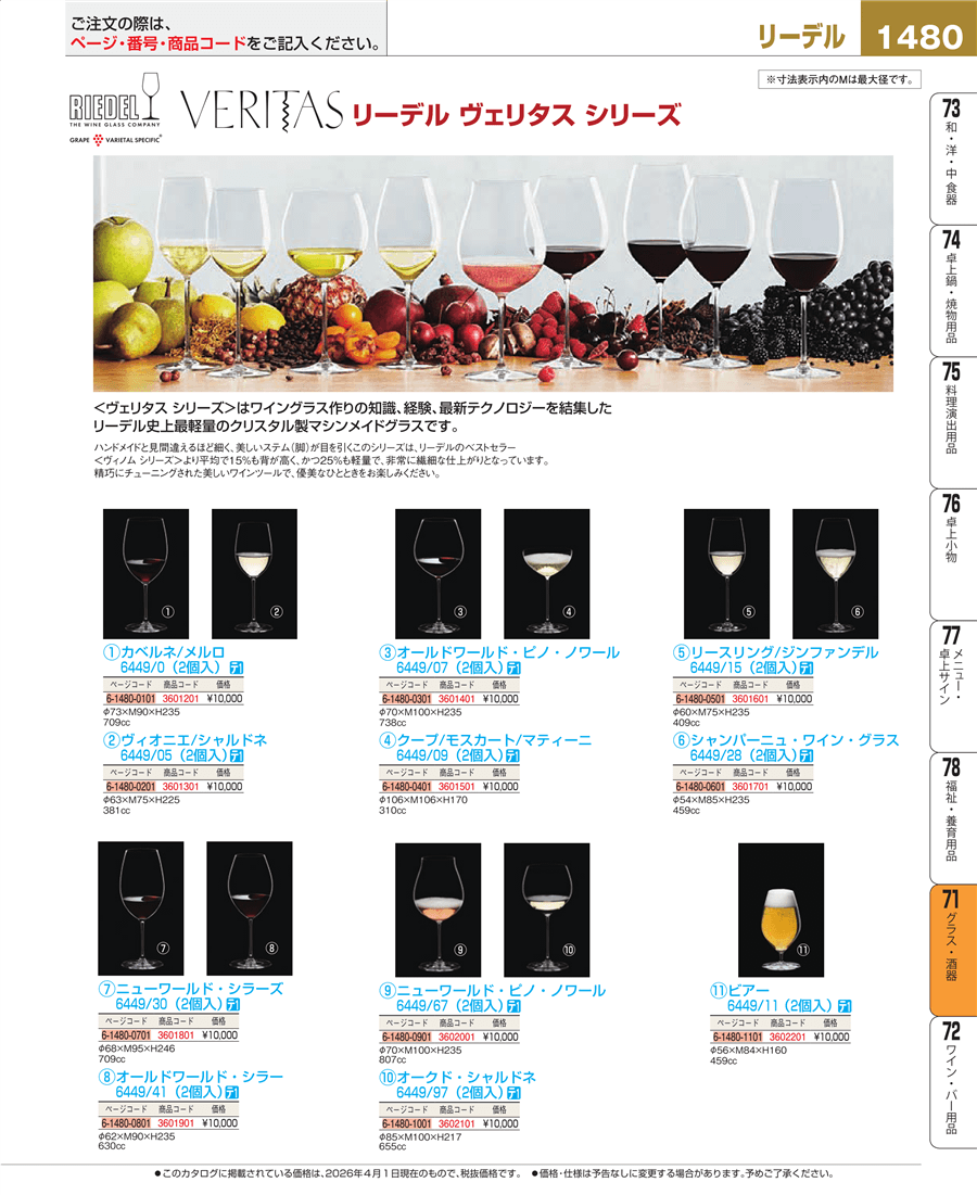 e26-3601201リーデル ヴェリスタ カベルネ/メルロ 6449/0(2個入)上代 10,000円(税抜)