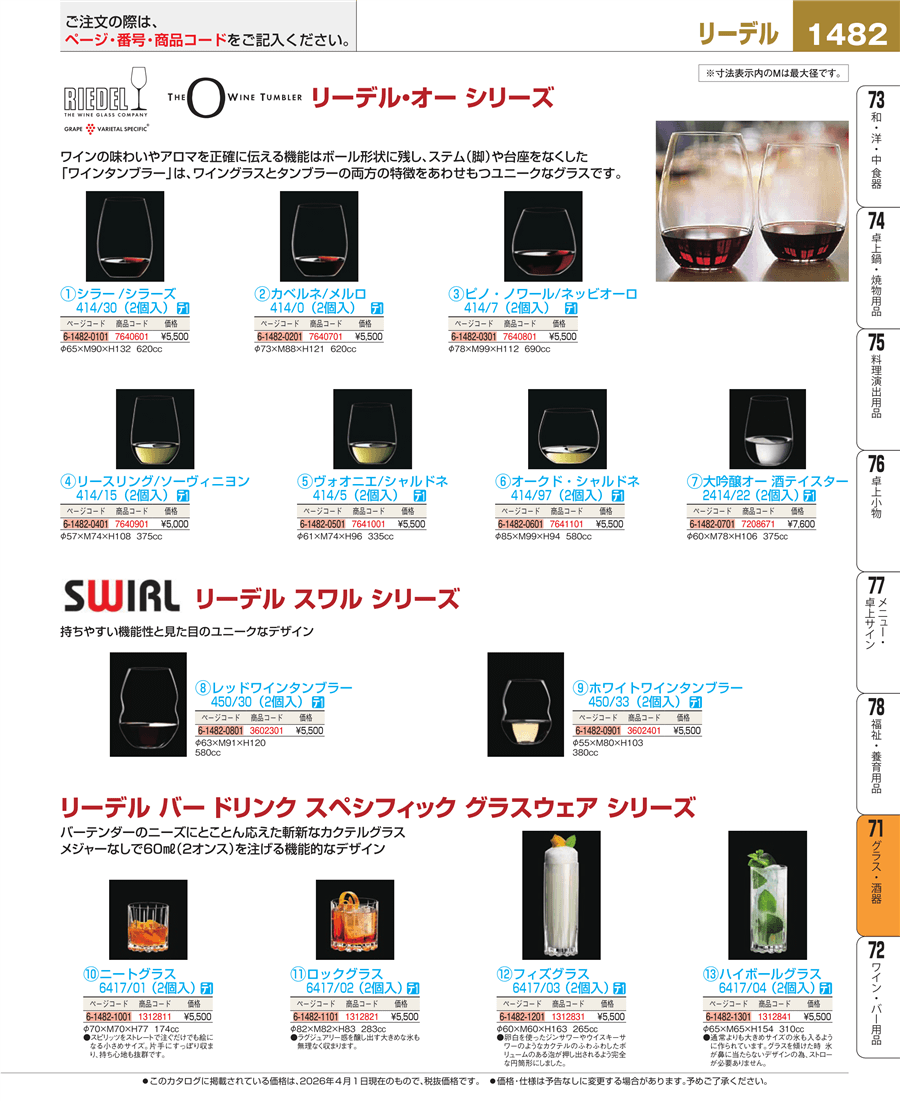 e26-7640901リーデル オーシリーズ リースリング/ソーヴィニヨン 414/15(2個入)上代 5,000円(税抜)