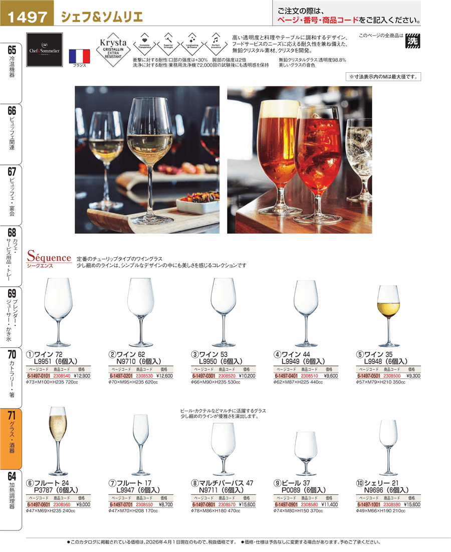 | e26-2308530 | シークエンス ワイン 62 N9710(6個入) | 上代 12,600円(税抜) 見積 | ||