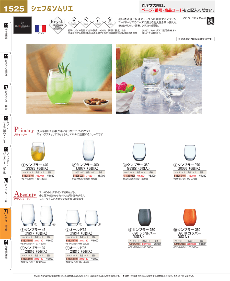 | e26-7163011 | プライマリー タンブラー400 L8677(6個入) | 上代 5,700円(税抜) 見積 | ||