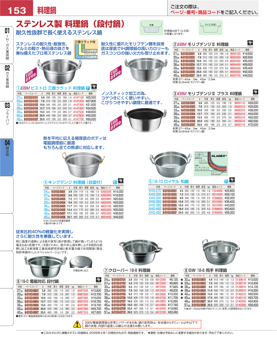 e26-8497260-153K 19-0 電磁対応 段付鍋 33㎝上代 15,000円(税抜)