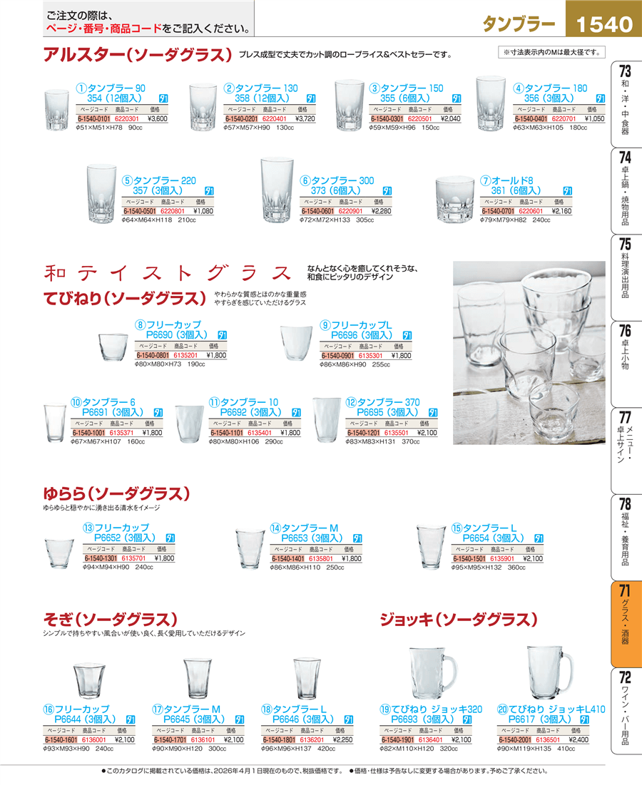 | e26-6220300 | アルスター(ソーダグラス)タンブラー90 354 | 上代 300円(税抜) 見積 | ||