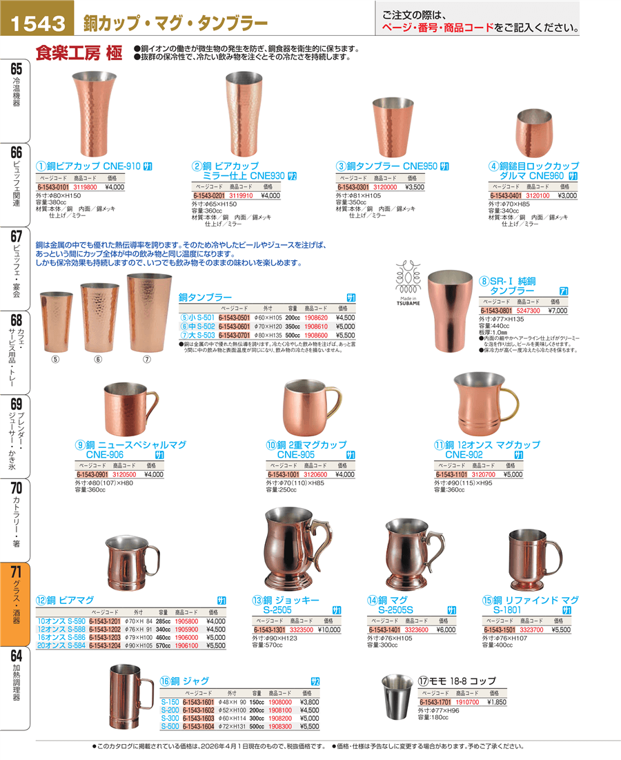 | e26-1908600-1543 | 銅 タンブラー 大 S-503 | 上代 5,500円(税抜) 見積 | ||