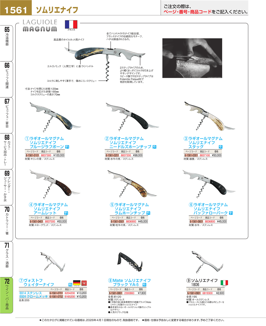 | e26-8837200 | ラギオールマグナム ソムリエナイフ ニードルズホーンチップ | 上代 98,000円(税抜) 見積 | ||