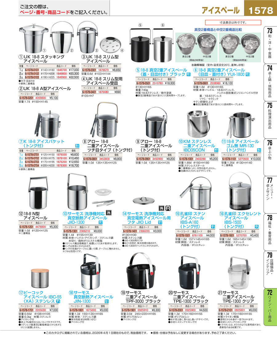 | e26-4359800 | UK 18-8 A型 アイスペール | 上代 5,100円(税抜) 見積 | ||