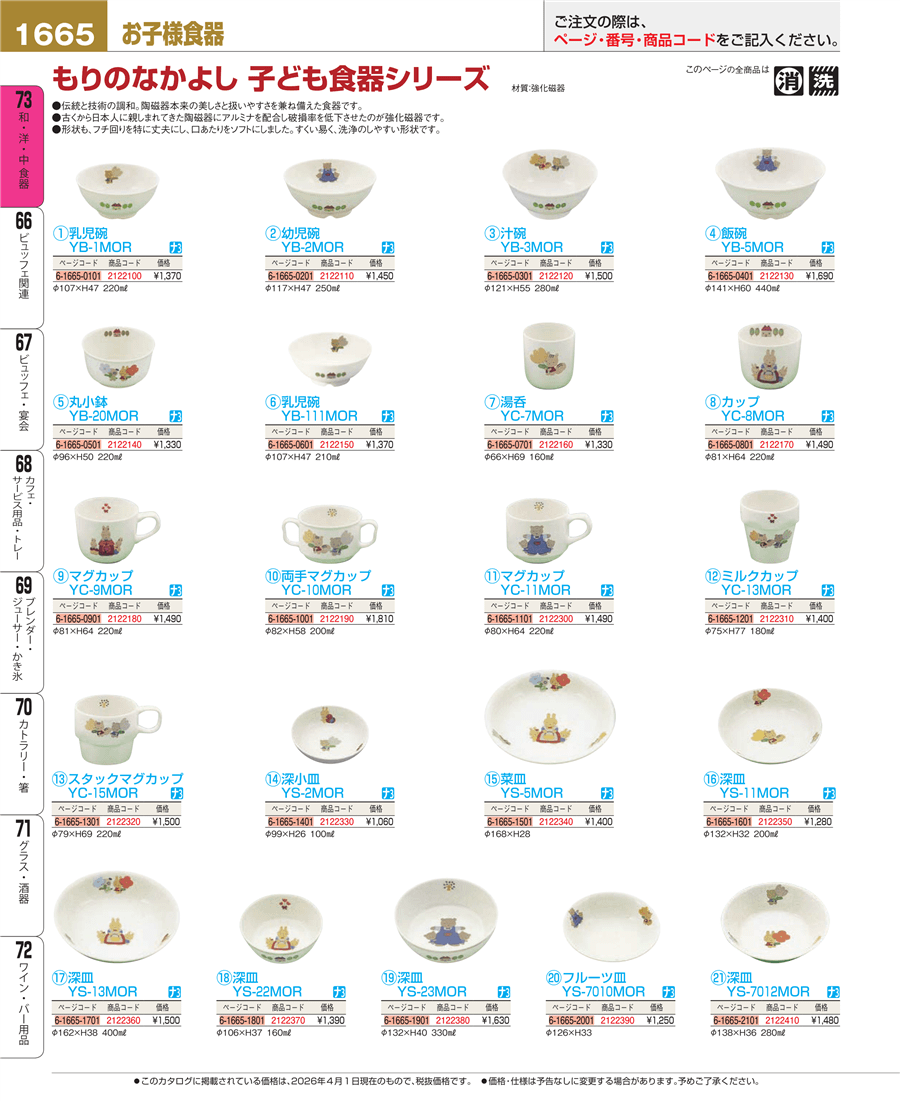 e26-2122100乳児碗 もりのなかよし YB-1MOR上代 1,370円(税抜)