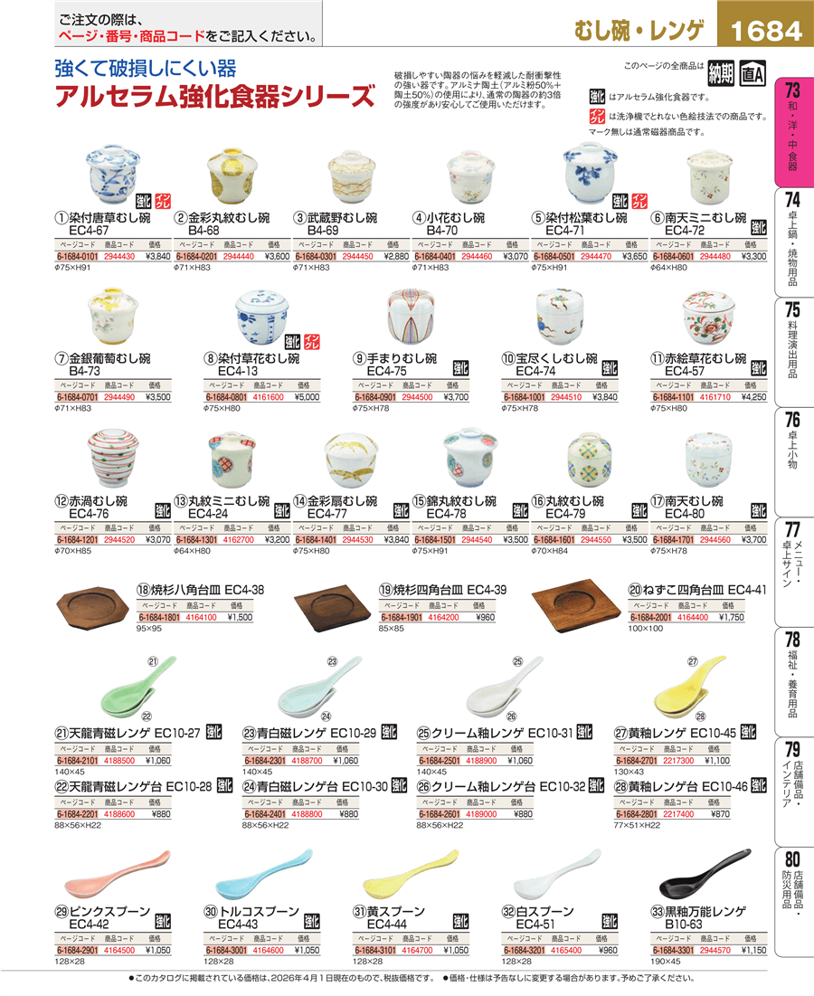 | e26-2944560 | アルセラム強化食器 南天むし碗 EC4-80 | 上代 3,700円(税抜) 見積 | ||