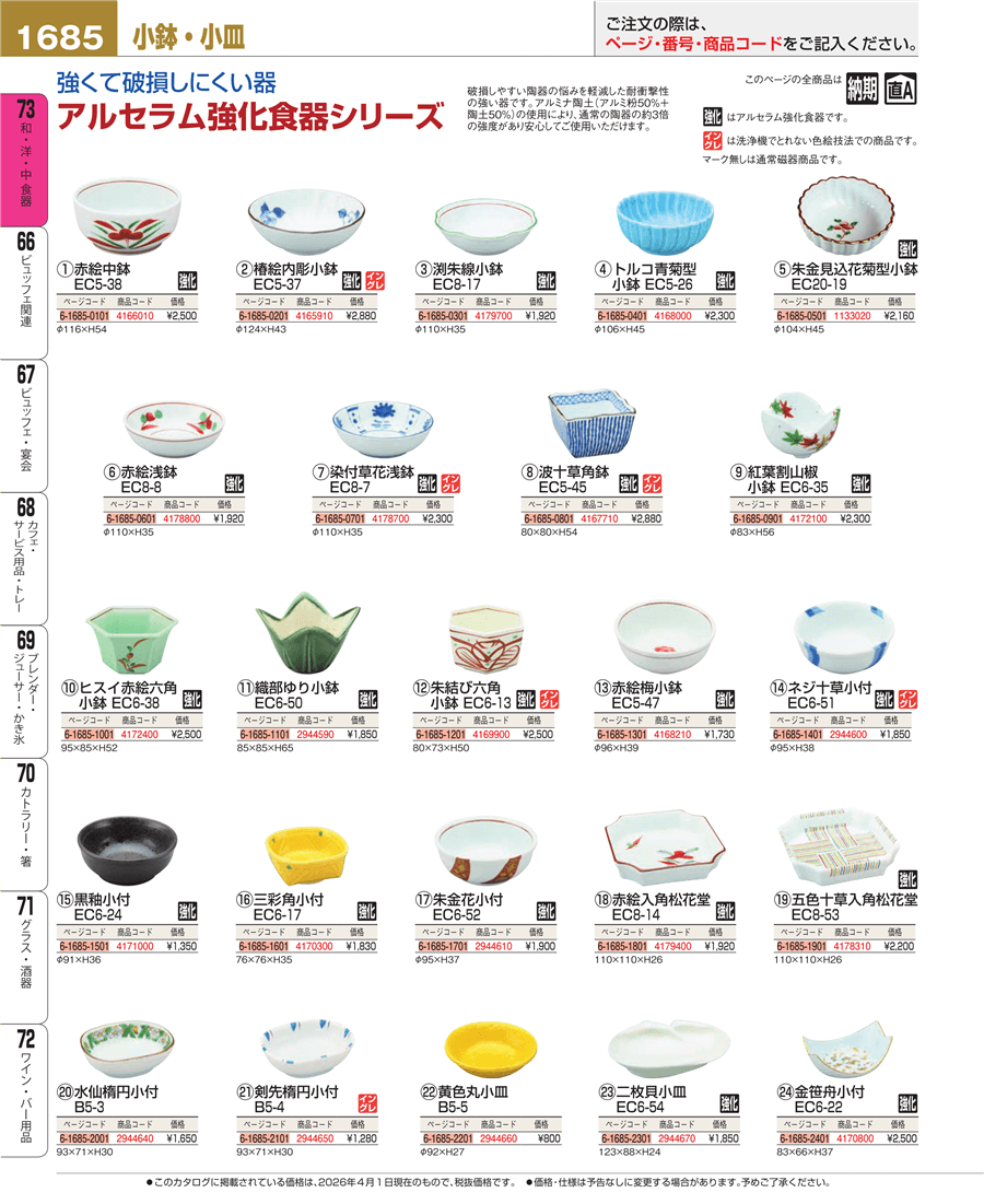 | e26-4172100 | アルセラム強化食器 紅葉割山椒小鉢 EC6-35 | 上代 2,300円(税抜) 見積 | ||