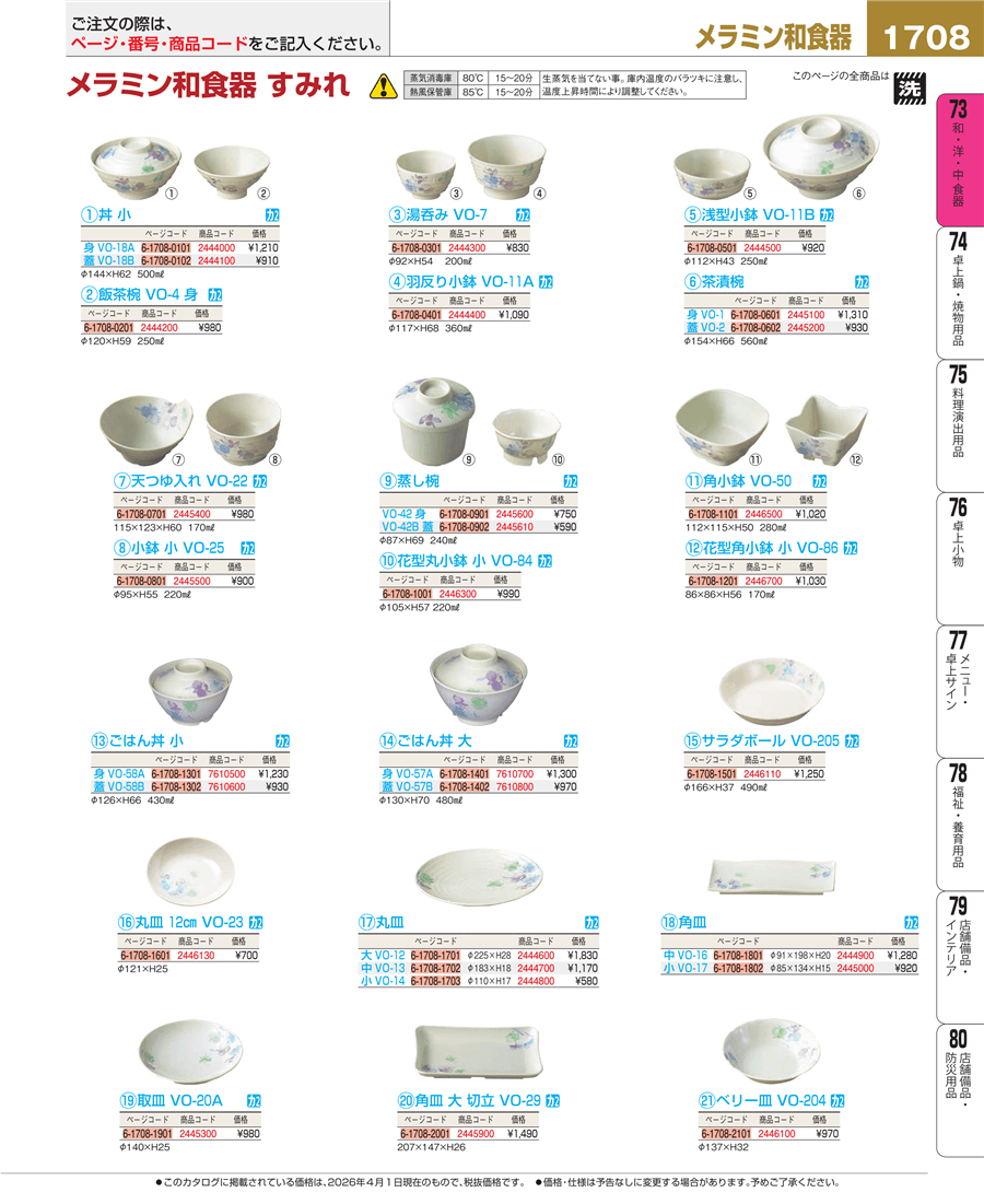 | e26-2444100 | メラミン和食器 すみれ 丼 小 蓋 VO-18B | 上代 910円(税抜) 見積 | ||