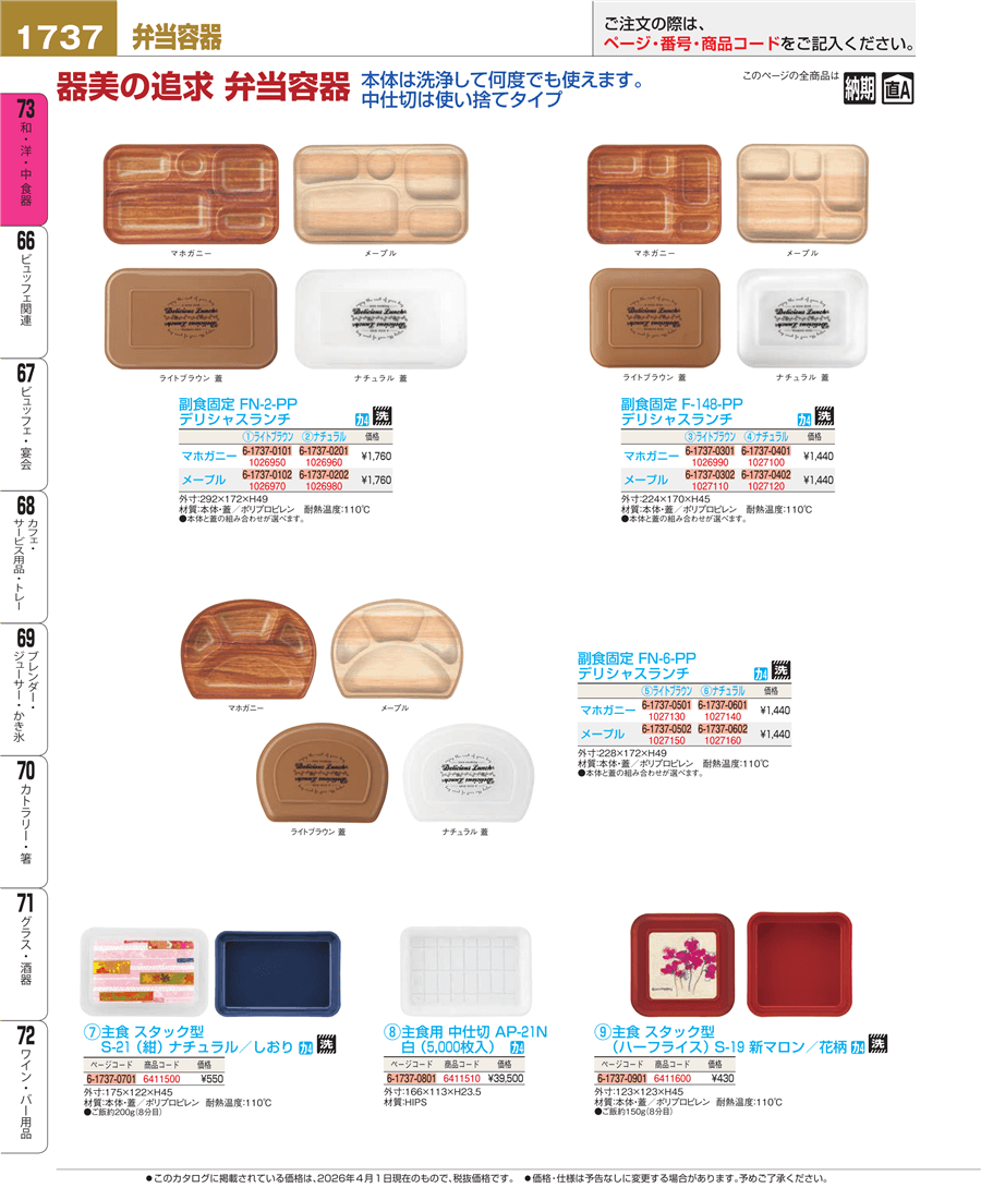 | e26-1027150 | 器美の追求 副食固定 FN-6-PP メープル/ライトブラウン デリシャスランチ | 上代 1,440円(税抜) 見積