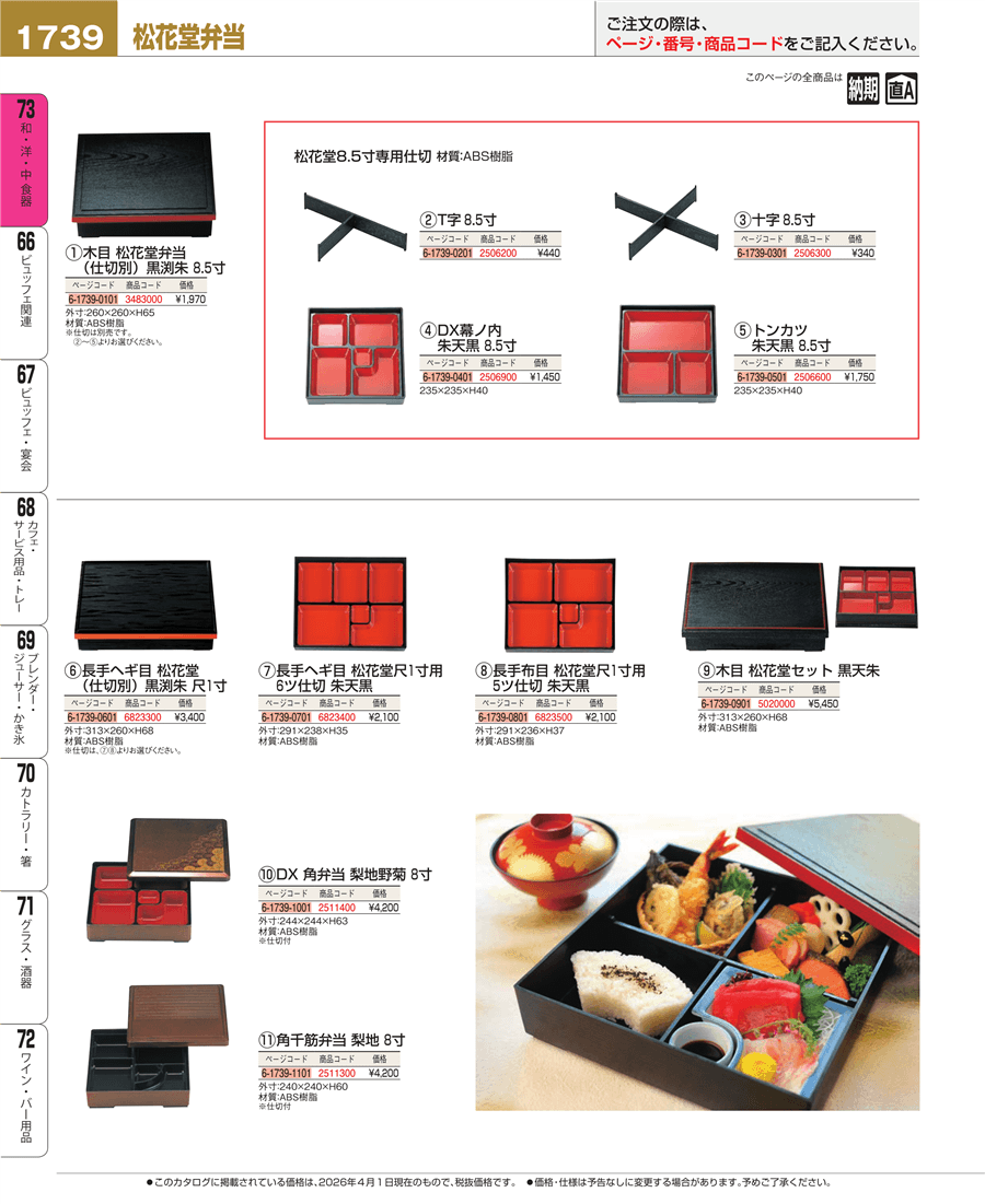 | e26-6823400 | 長手ヘギ目 松花堂尺1寸用 6ツ仕切 朱天黒 | 上代 2,100円(税抜) 見積 | ||