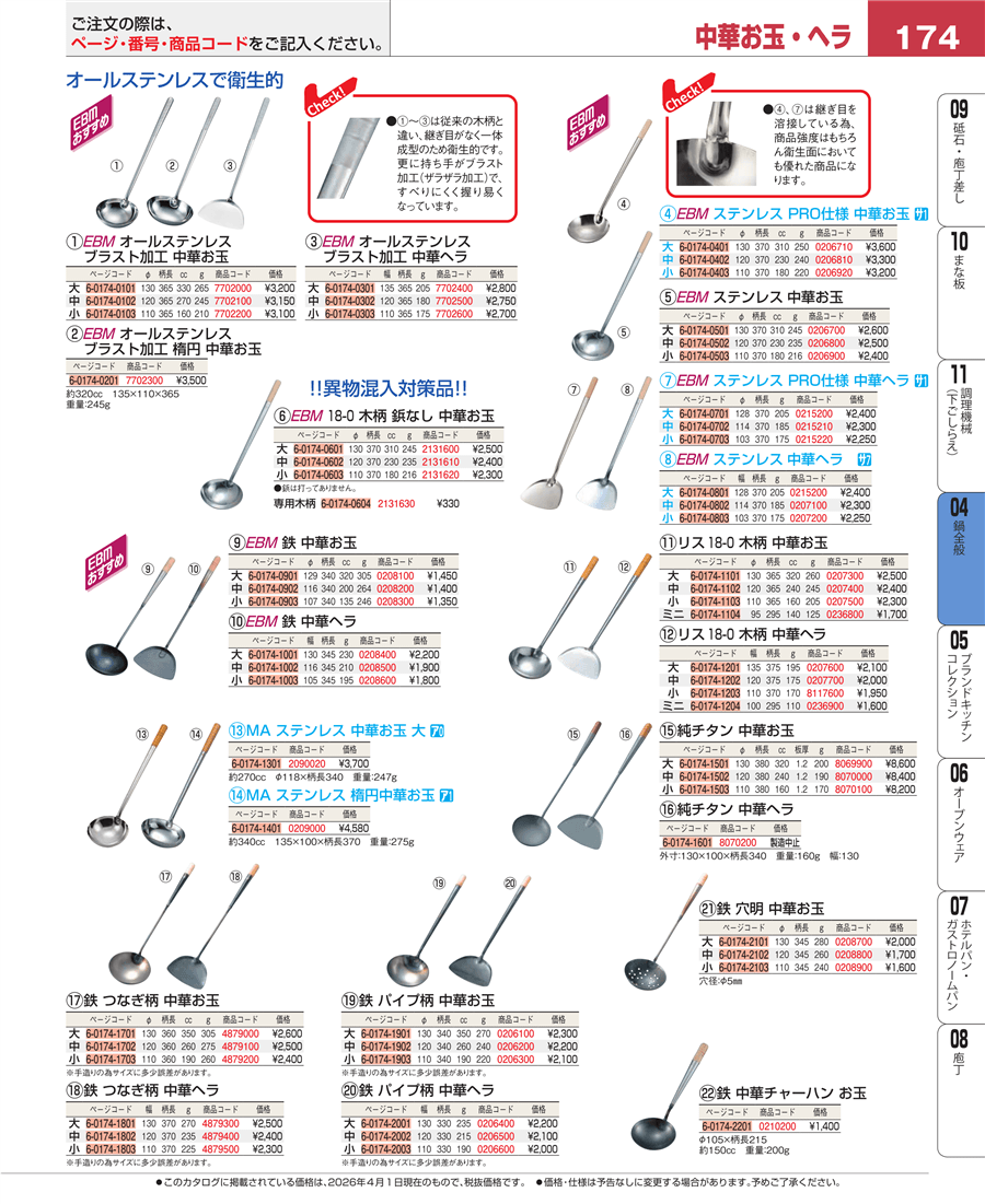 174ページ目-業務用食器カタログ「EBM業務用厨房用品カタログvol.26」