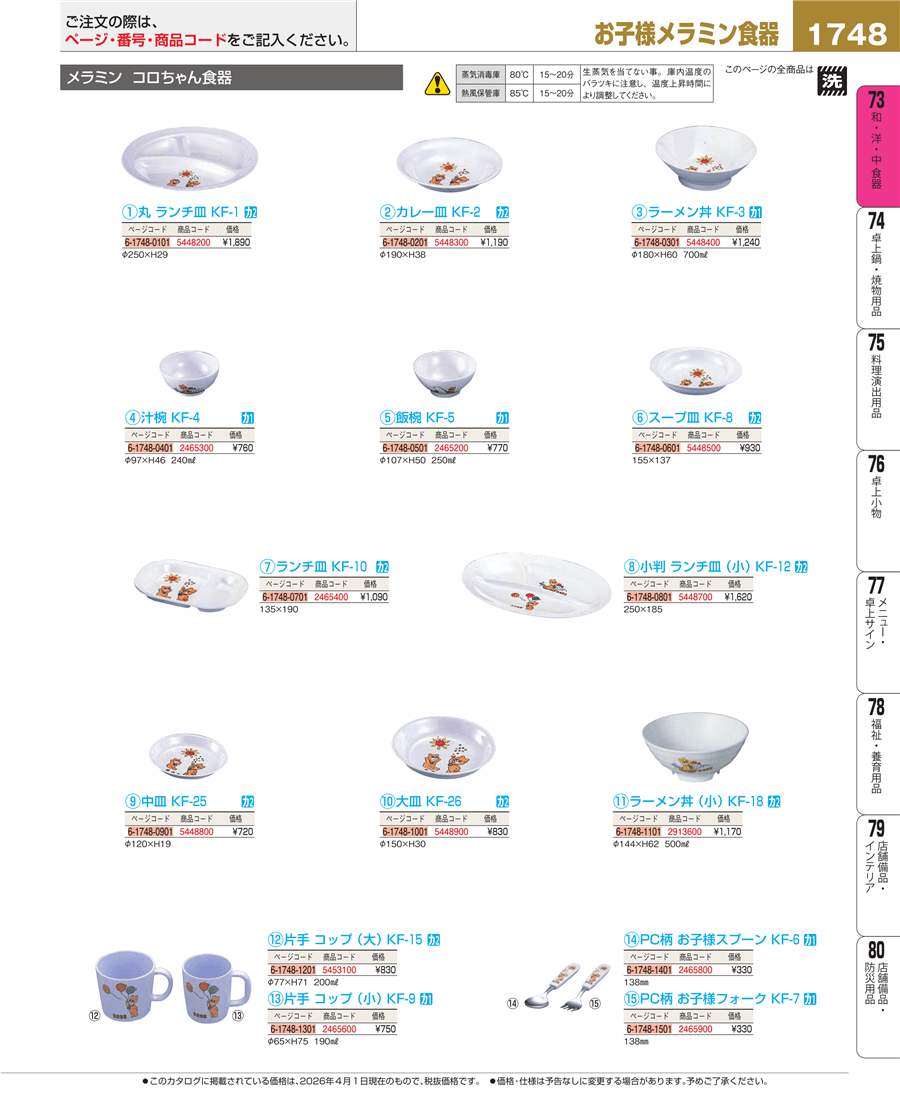 | e26-5448200 | メラミン 子供食器 コロちゃん 丸 ランチ皿 KF-1 | 上代 1,890円(税抜) 見積 | ||