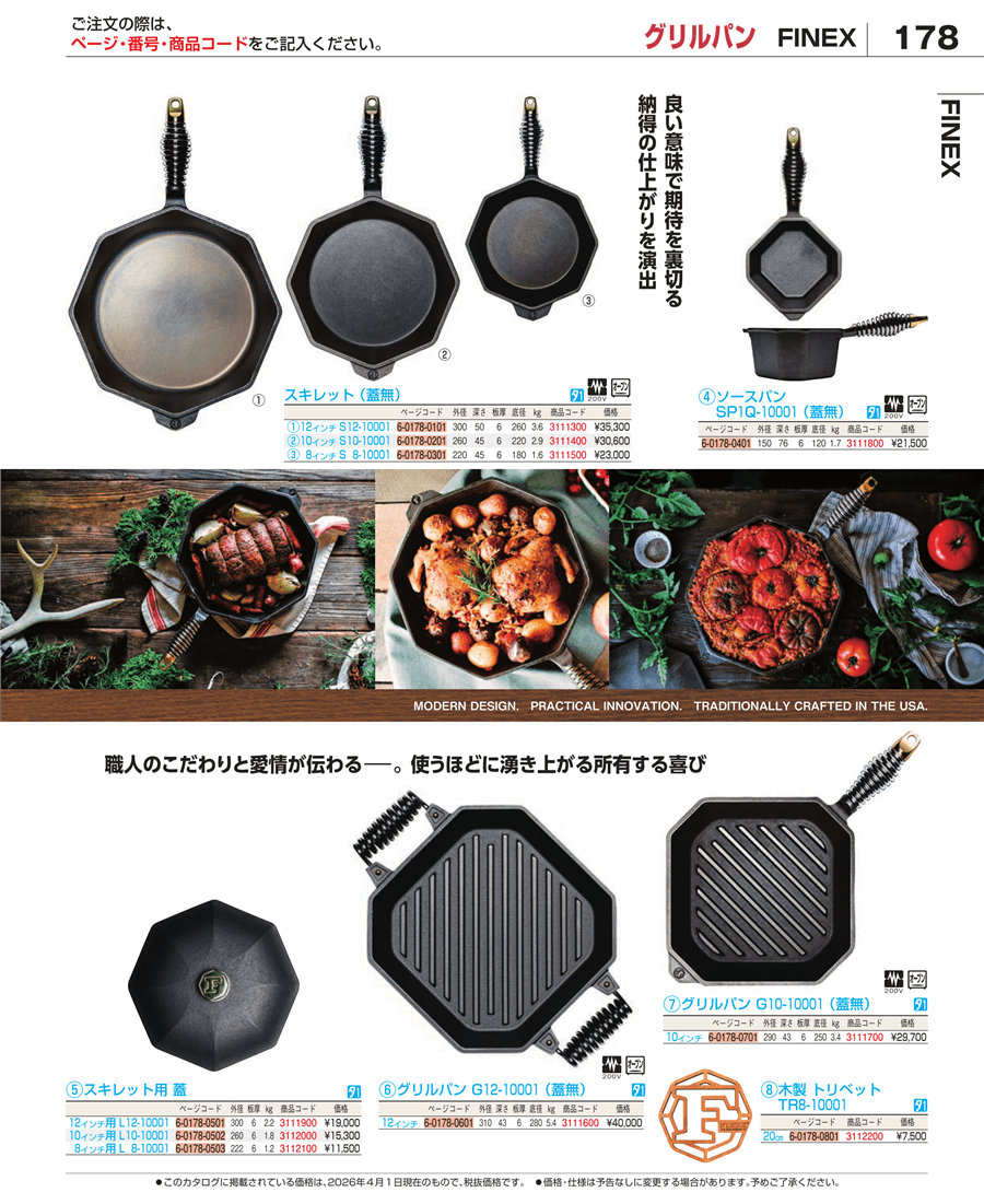 e26-3112100フィネックス スキレット用蓋 8インチ用 L8-10001上代 11,500円(税抜)