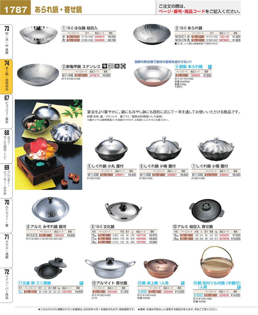 | e26-6878600 | 18-0 あられ鍋 M10-174 大(φ190) | 上代 1,800円(税抜) 見積 | ||