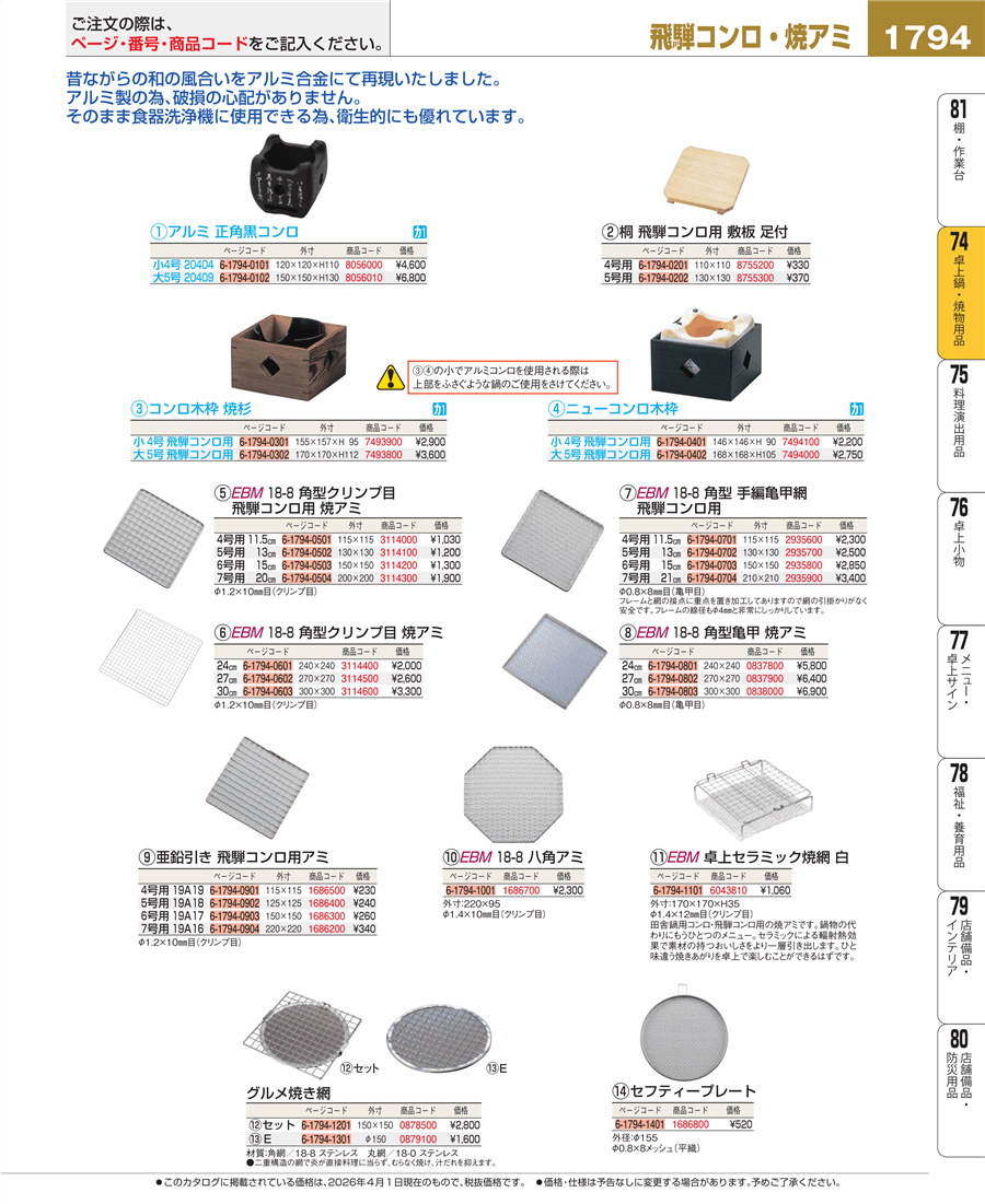 1794ページ目-業務用食器カタログ「EBM業務用厨房用品カタログvol.26」