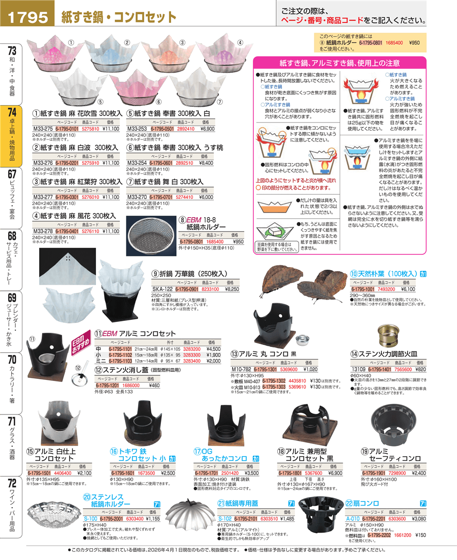 | e26-6303510 | 紙鍋専用蓋 S-102 | 上代 1,485円(税抜) 見積 | ||