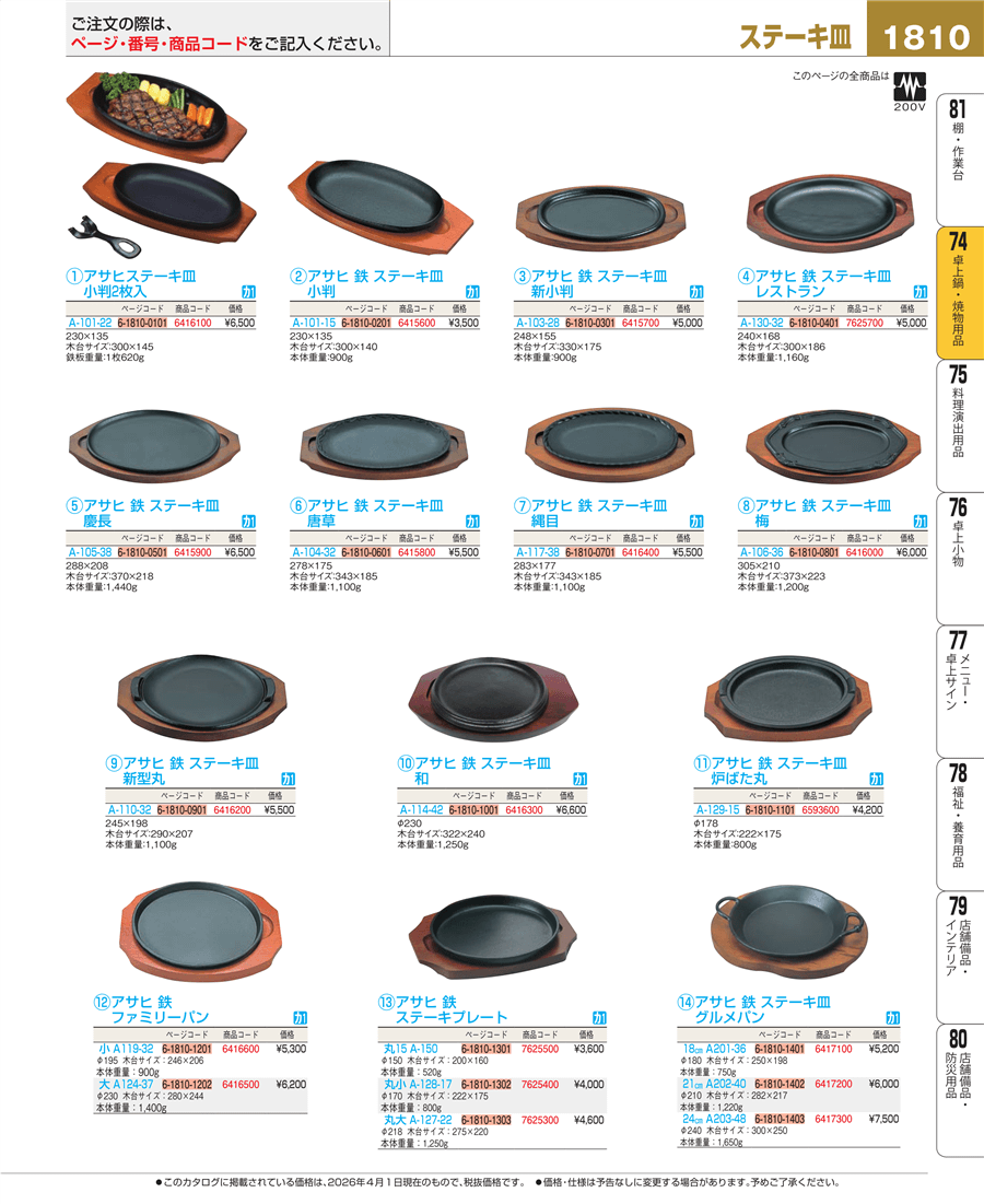 | e26-6416300 | アサヒ 鉄 ステーキ皿 A-114-42 和 | 上代 6,600円(税抜) 見積 | ||
