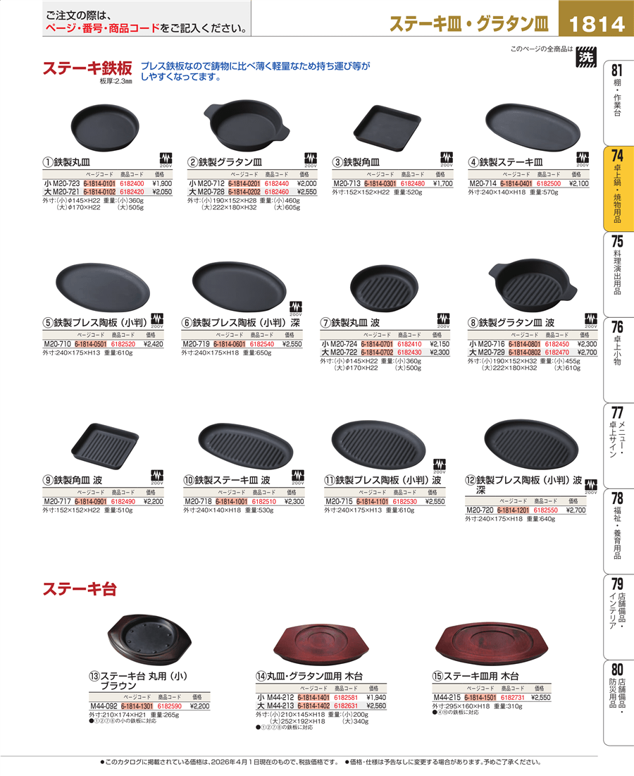 | e26-6182500 | 鉄製 ステーキ皿 M20-714 | 上代 2,100円(税抜) 見積 | ||