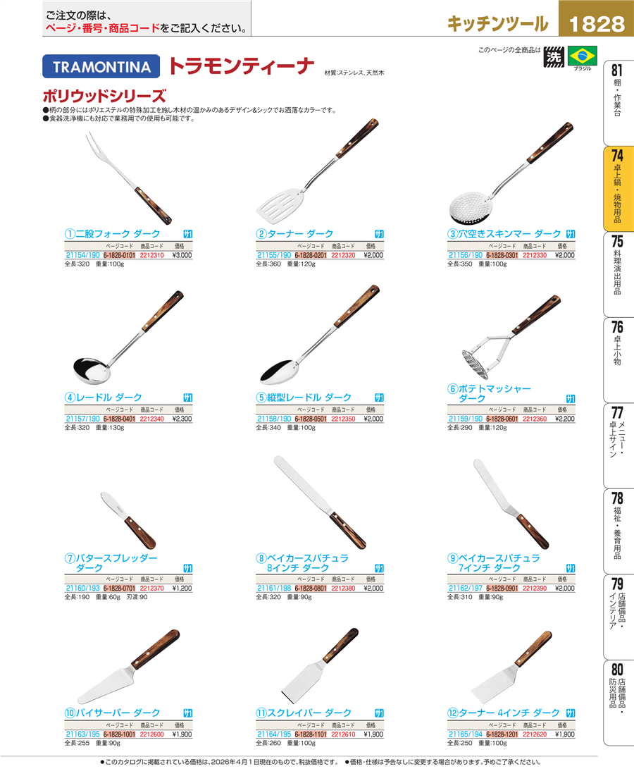 | e26-2212390 | トラモンティーナ ポリウッド ベイカースパチュラ 7インチ ダーク 21162/197 | 上代 2,000円(税抜) 見積 | ||