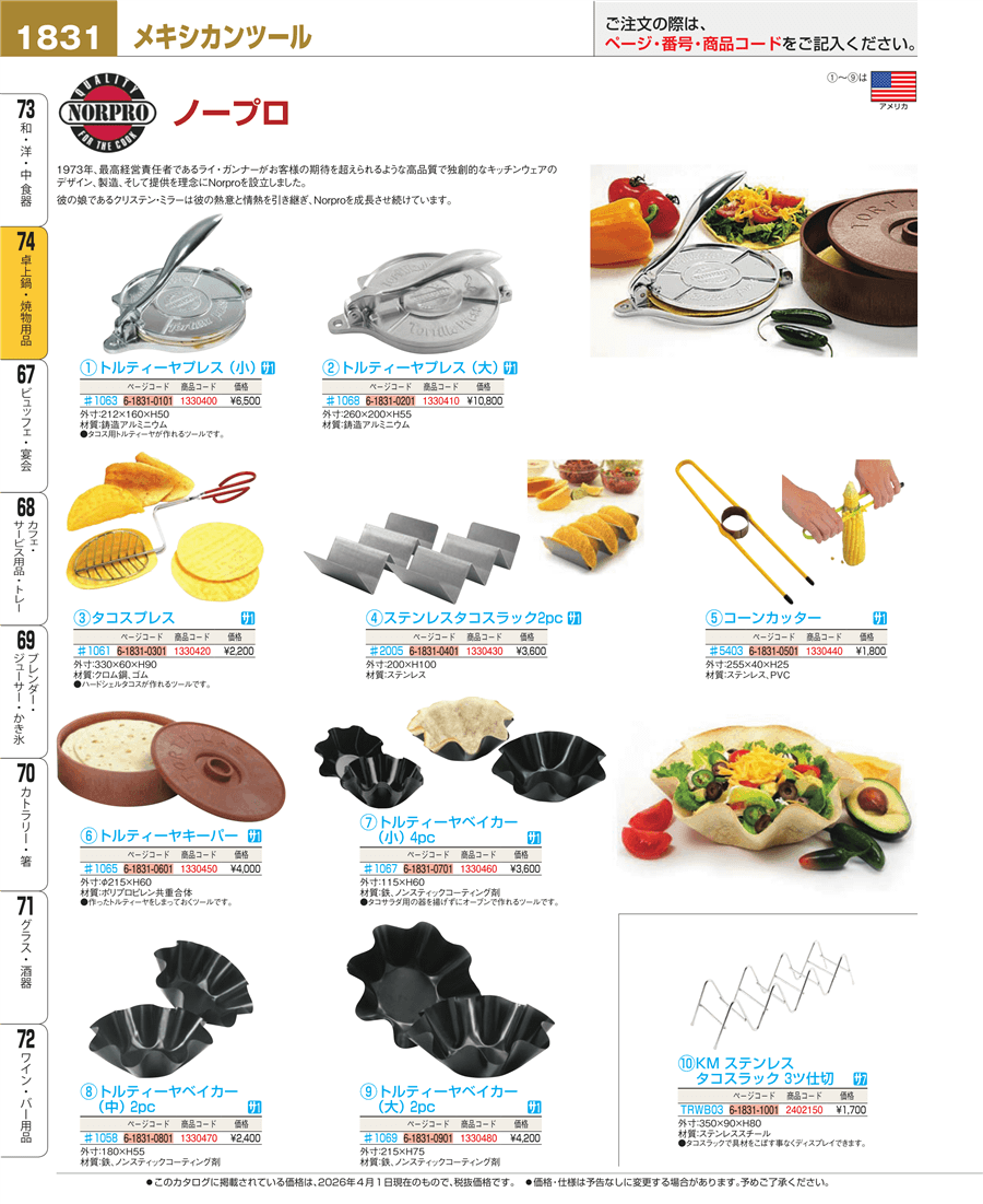 | e26-1330460 | ノープロ トルティーヤベイカー(小)4pc ♯1067 | 上代 3,600円(税抜) 見積 | ||