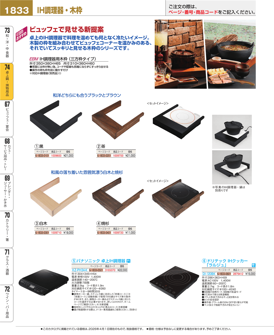 | e26-1009700-1833 | EBM IH調理器用木枠 茶 | 上代 21,000円(税抜) 見積 | ||