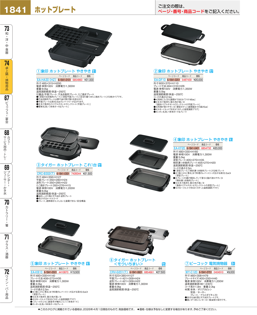| e26-7428344 | タイガー ホットプレート これ1台 CRC-B302(T) | 上代 21,500円(税抜) 見積 | ||