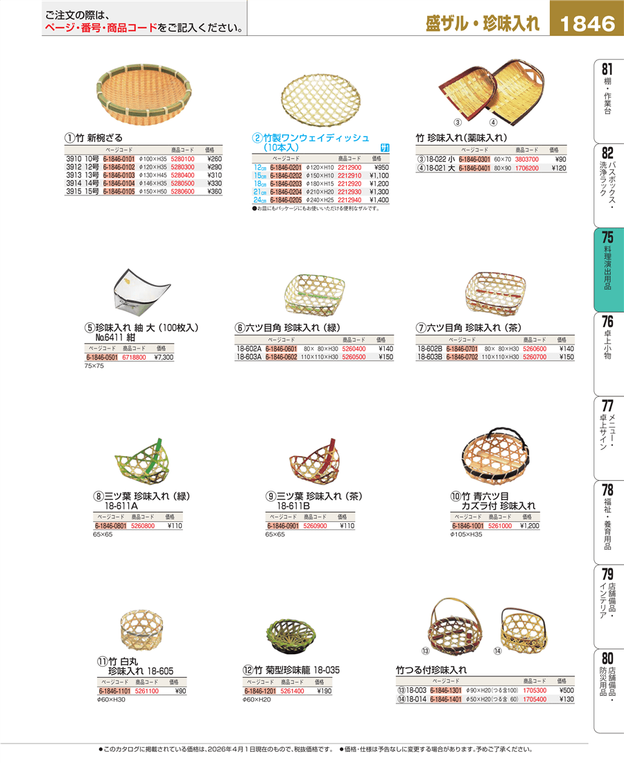 | e26-5261400 | 竹 菊型珍味籠 18-035 | 上代 190円(税抜) 見積 | ||