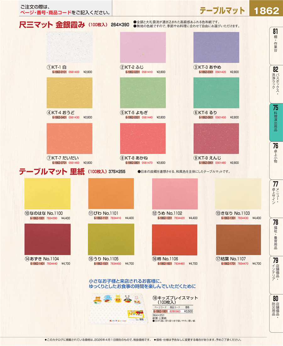 e26-7834440テーブルマット 里紙(100枚入)あずき №1104上代 4,700円(税抜)