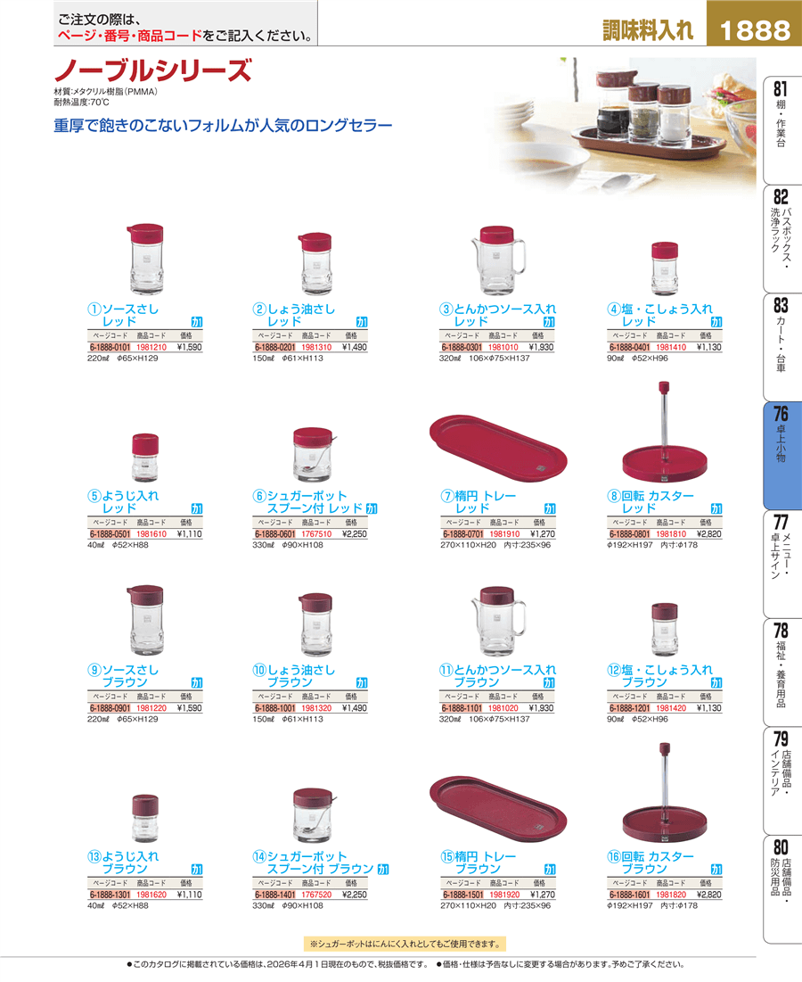 | e26-1981010 | ノーブル とんかつソース入れ レッド | 上代 1,930円(税抜) 見積 | ||