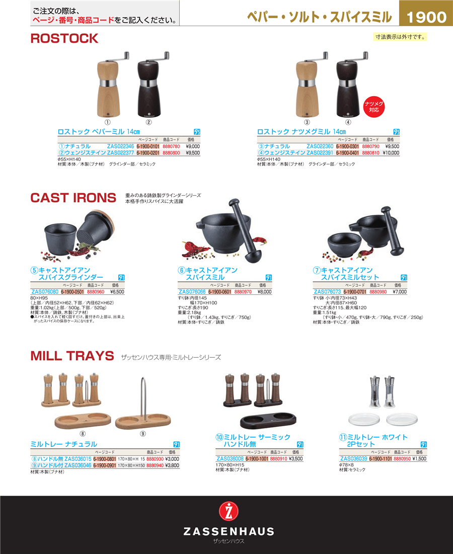 | e26-8880980 | ザッセンハウス スパイスミルセット キャストアイアン ZAS076073 | 上代 7,000円(税抜) 見積 | ||