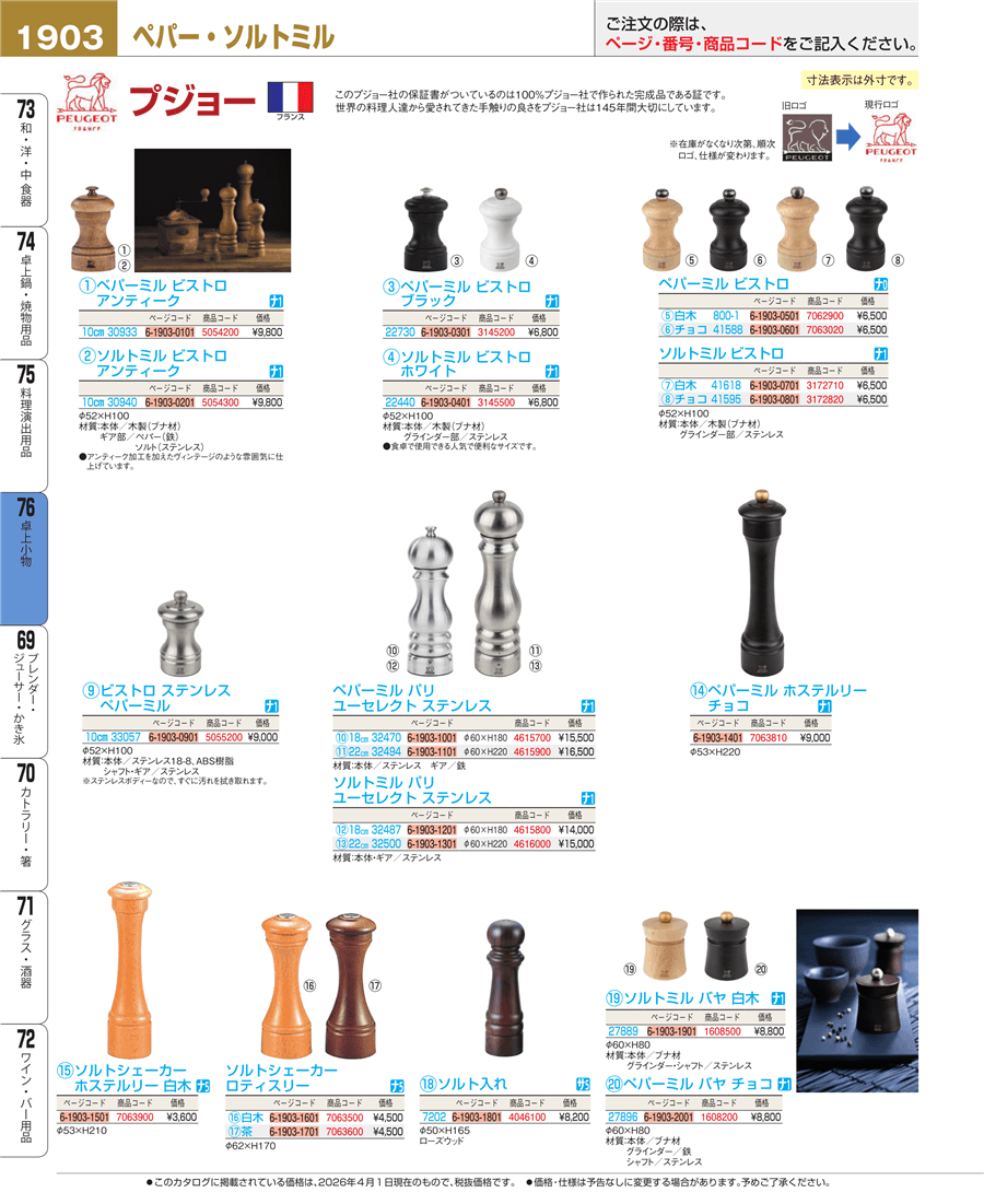 e26-7063900プジョー ソルトシェーカー ホステルリー 白木 822-1上代 3,600円(税抜)
