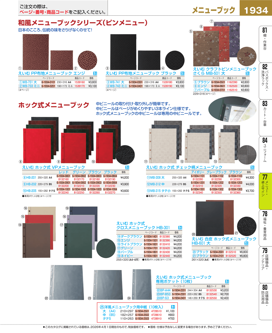 e26-1162500えいむ クラフトピンメニューブック さくら MB-501 大 エンジ上代 2,800円(税抜)