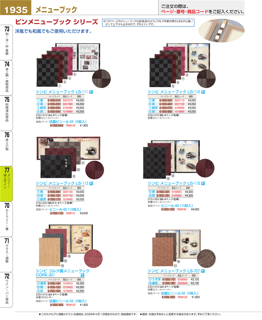 | e26-7839122-1935 | シンビ メニューブック用ビニール 抗菌ビニール-55(5枚入) | 上代 1,900円(税抜) 見積 | ||