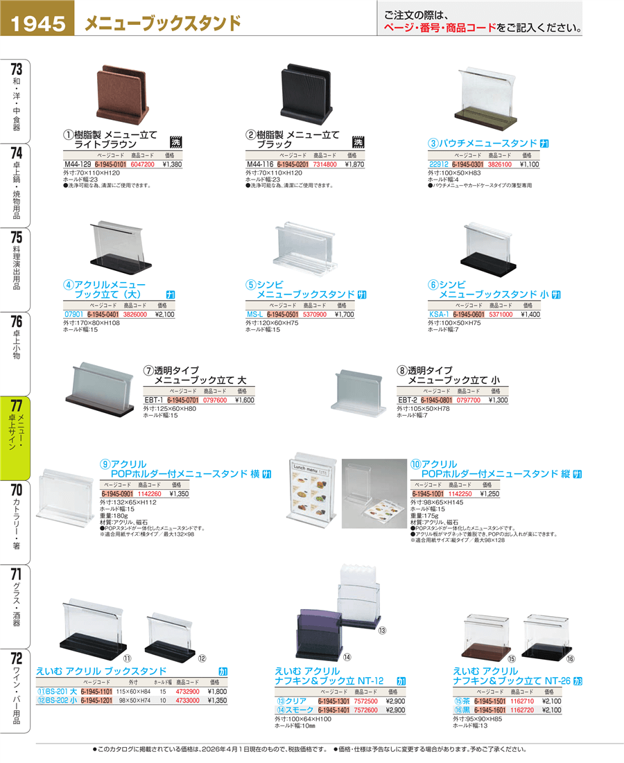 | e26-0797700 | 透明タイプ メニューブック立て EBT-2 小 | 上代 1,300円(税抜) 見積 | ||