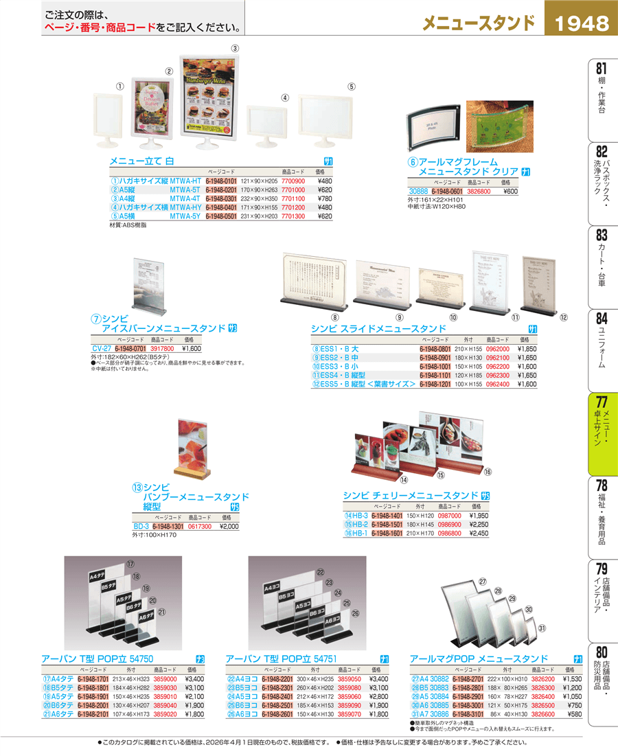 | e26-7701000 | メニュー立て 白 A5縦 MTWA-5T | 上代 620円(税抜) 見積 | ||