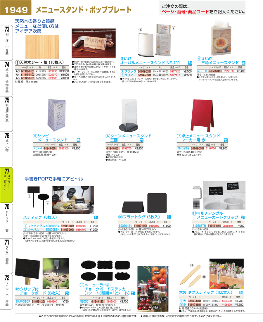 | e26-5995300 | シンビ メニュースタンド KOK-4 100×H150 | 上代 2,200円(税抜) 見積 | ||